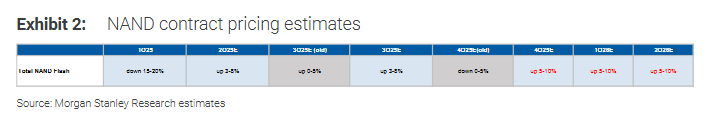 AI引发的芯片狂热正从GPU等逻辑芯片,迅速蔓延至内存领域。摩根士丹利认为,内存市场,特别是闪存(NAND),正处于一个持久上升周期的“早期阶段”。