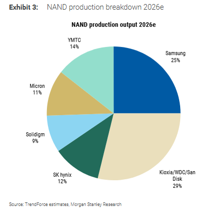 摩根士丹利认为,与市场普遍关注的DRAM内存和机械硬盘相比,闪存市场因其供需格局的急剧扭转,展现出更显著的上涨潜力。