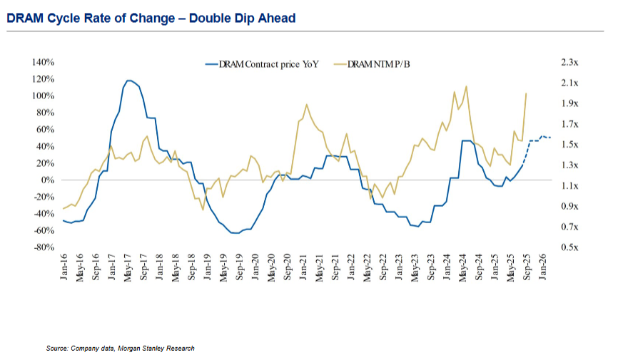 根据摩根士丹利的分析,半导体行业,尤其是内存领域,正处在一个关键的周期转折点。